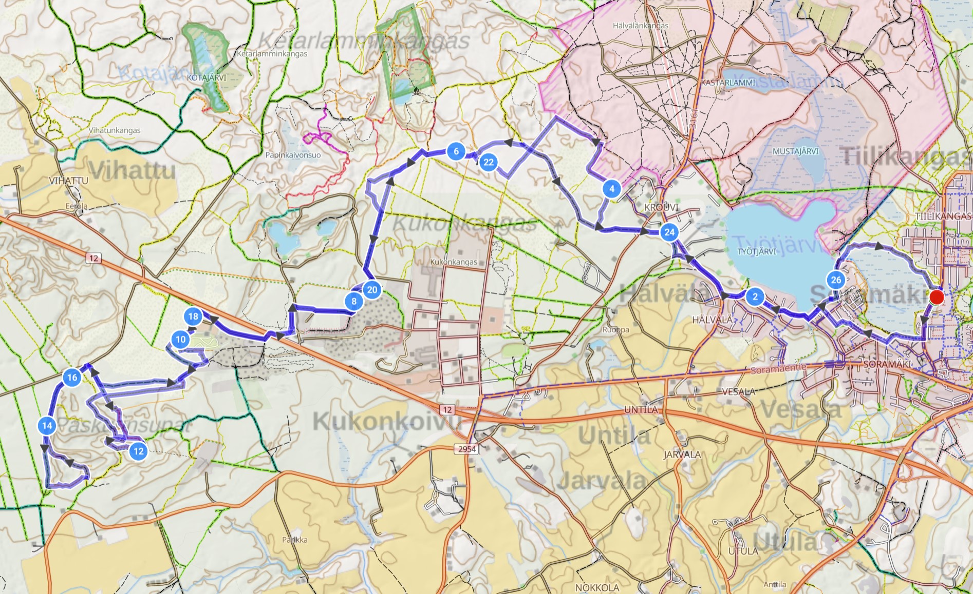 Taas kun ollaan Kukonkoivu-Hälvälä-suunnalla, niin reittiä voi halutessaan pidentää monin tavoin. Esim. Ketarlammit ovat lähellä 6 km/22 km huitteilla tai niiltä main suunnan voi ottaa myös kohti Vihatun polkuja. Tai jos intoa piisaa, niin Tiilikankaalle voi palata vaikka kiertämällä armeijan ampuma-alueen myötäpäivään.